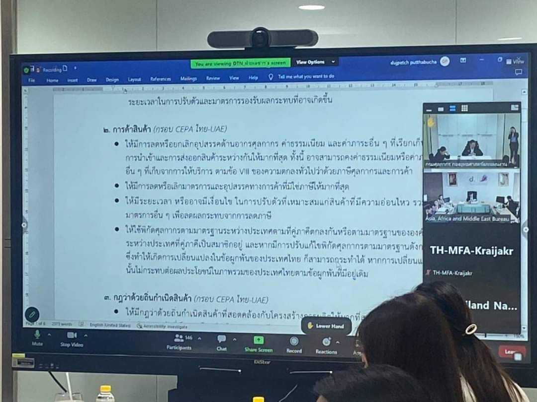นายนิติ วิทยาเต็ม ผู้อำนวยการกองยุทธศาสตร์และแผนงาน พร้อมด้วยผู้แทน ประชุมกับหน่วยงานภาครัฐที่เกี่ยวข้อง โดยมีกรมเจรจาการค้าระหว่างประเทศเป็นเจ้าภาพ