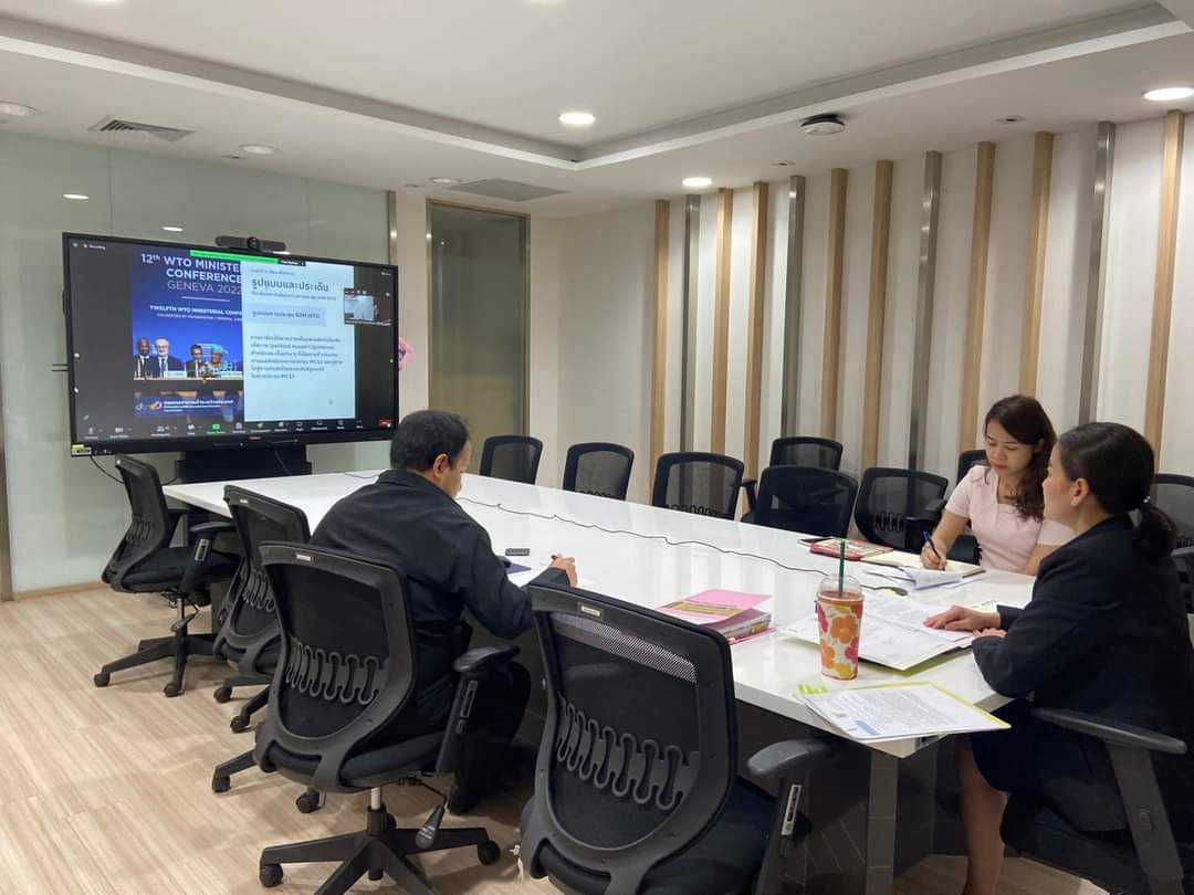 นางสาวอโนมา อินชื่นใจ ผู้อำนวยการส่วนความร่วมมือระหว่างประเทศ พร้อมด้วยเจ้าหน้าที่ที่เกี่ยวข้อง ประชุมเตรียมการฝ่ายไทยสำหรับการประชุมระดับเจ้าหน้าที่อาวุโส และประชุมหารือในประเด็น E-Commerce Work Programme and Moratorium
