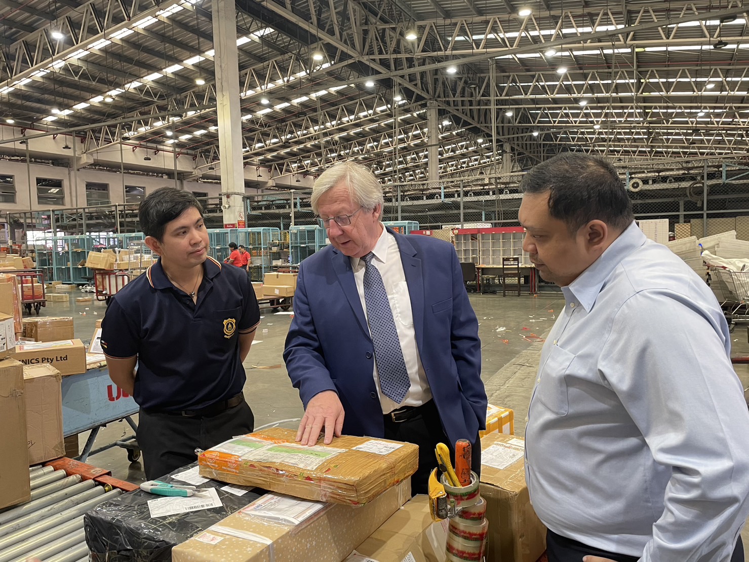 Mr. Eddy De Cuyper ที่ปรึกษาด้านศุลกากร (Customs Counsellor) ประจำสถานเอกอัครราชทูตเบลเยียม ณ กรุงจาการ์ตา สาธารณรัฐอินโดนีเซีย เข้าเยี่ยมชมการปฏิบัติงานด้านศุลกากร ส่วนบริการศุลกากรไปรษณีย์ สำนักงานศุลกากรกรุงเทพ