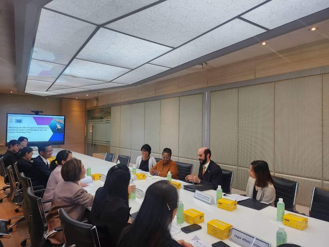 วันที่ (14 มีนาคม 2567) นางสรรค์ศุภา คล้ายสุบรรรณ ผู้อำนวยการกองยุทธศาสตร์และแผนงาน พร้อมด้วยนางสาวอโนมา อินชื่นใจ ผู้อำนวยการส่วนความร่วมมือระหว่างประเทศ กองยุทธศาสตร์และแผนงาน นายวิทวัส โพธาราม ผู้อำนวยการส่วนข่าวกรอง ศูนย์ประมวลข้อมูลการข่าวทางศุลกากร นางสาวณัษฐา วงศ์อร่าม ผู้อำนวยการส่วนพิธีการศุลกากร กองมาตรฐานพิธีการและราคาศุลกากร และเจ้าหน้าที่ที่เกี่ยวข้องเข้าร่วมการหารือกับคณะผู้แทน Container Security Initiative นำโดย Mr. Edward Thurmond, U.S. CBP Attaché to Thailand, Ms. Monica Willis CSI Team Lead และผู้แทนที่เกี่ยวข้อง เพื่อจัดทำร่าง Addendum to Declaration of Principles (DOP) for CSI Laem Chabang Port ณ ห้องประชุม 5 ชั้น 2 อาคาร 1 กรมศุลกากร