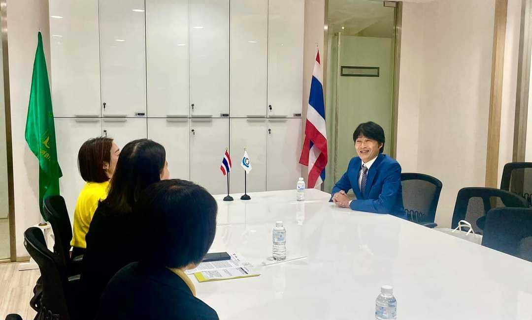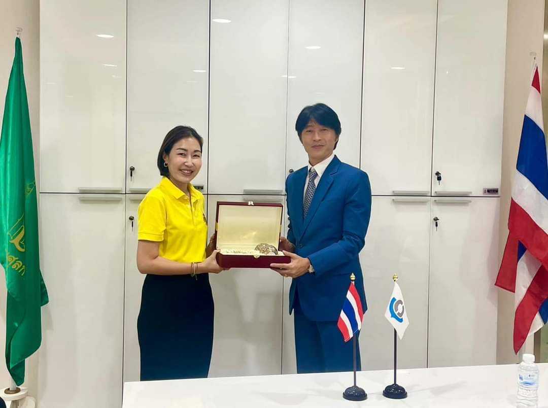 นางสรรค์ศุภา คล้ายสุบรรณ ผู้อำนวยการกองยุทธศาสตร์และแผนงาน พร้อมคณะ กยผ. ให้การต้อนรับ Mr. Norikazu Kuramoto หัวหน้าสำนักงานเสริมสร้างขีดความสามารถประจำภูมิภาคเอเชียแปซิฟิก