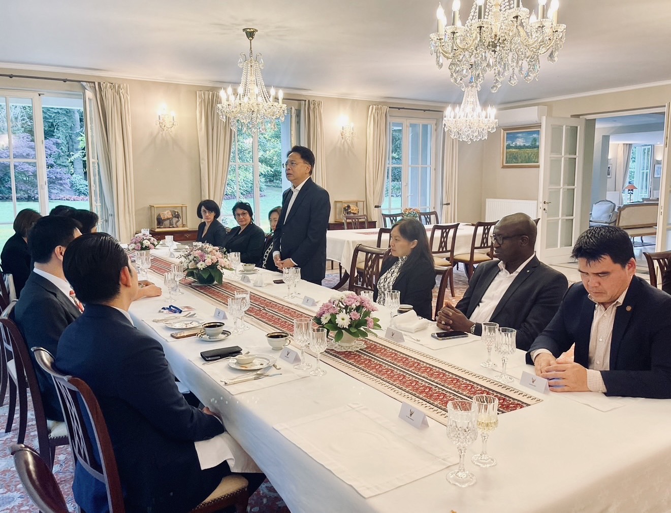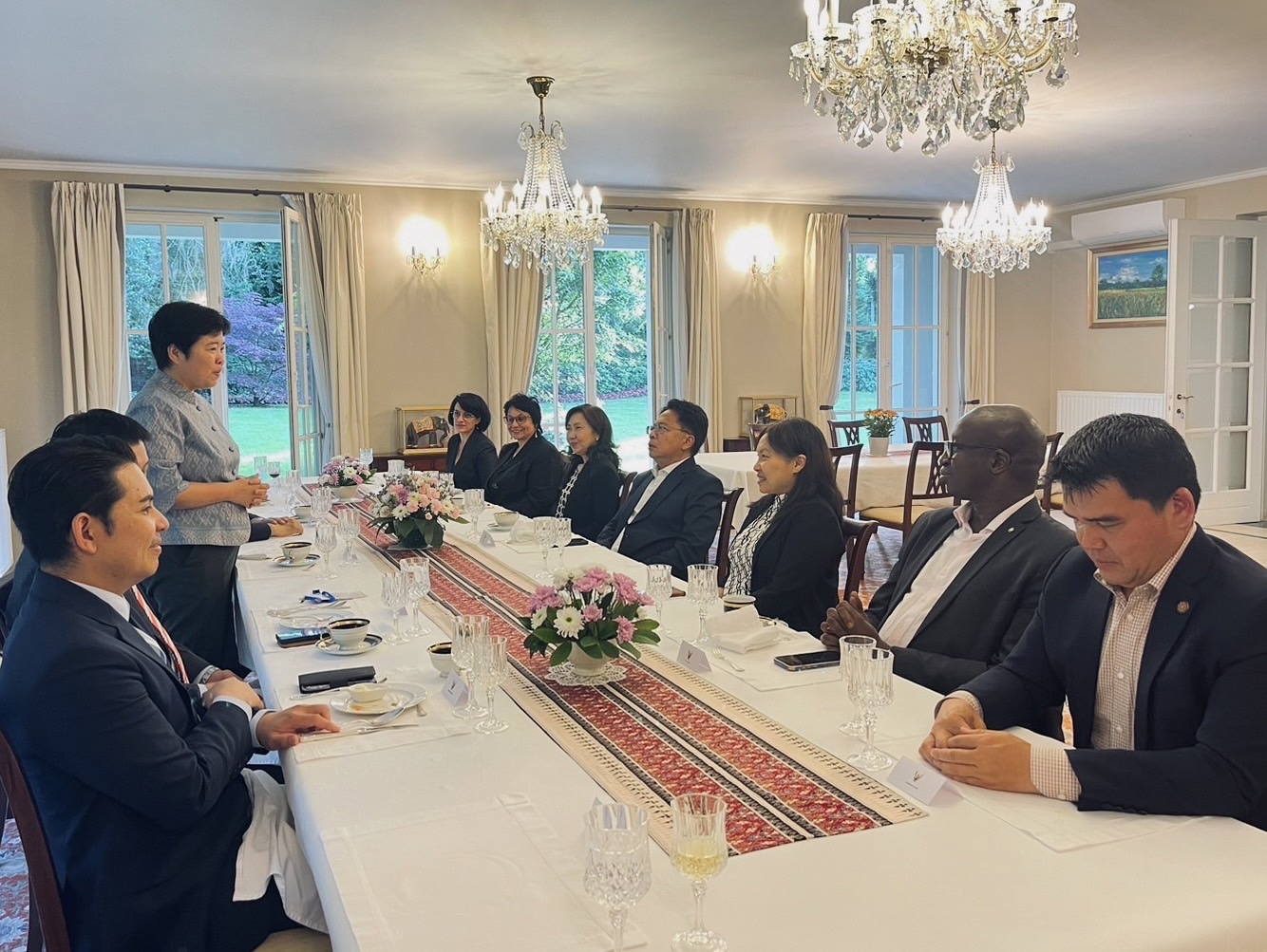 เมื่อวันที่ 28 มิถุนายน 2567 นายธีรัชย์ อัตนวานิช อธิบดีกรมศุลกากร นายนิติ วิทยาเต็ม รองอธิบดี และนางสรรค์ศุภา คล้ายสุบรรณ ผู้อำนวยการกองยุทธศาสตร์และแผนงาน พร้อมด้วยผู้แทนจากสำนักงานที่ปรึกษาการศุลกากร ประจำสถานเอกอัครราชทูต ณ กรุงบรัสเซลส์ และกองยุทธศาสตร์และแผนงาน เข้าเยี่ยมคารวะ นางกาญจนา ภัทรโชค เอกอัครราชทูต ณ กรุงบรัสเซลส์ เพื่อหารือเกี่ยวกับการอำนวยความสะดวกทางการค้าและความร่วมมือทางศุลกากรร่วมกับผู้แทนจากองค์การศุลกากรโลก ณ ทำเนียบเอกอัครราชทูตไทย ณ กรุงบรัสเซลส์