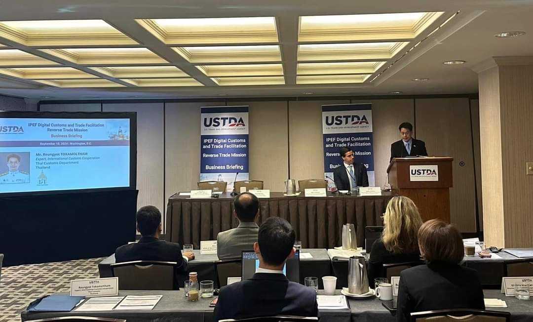 (11 กันยายน 2567) นายเรืองยศ โตกมลธรรม ผู้เชี่ยวชาญด้านความร่วมมือทางศุลกากรระหว่างประเทศ กองยุทธศาสตร์และแผนงาน ได้เป็นตัวแทนนำเสนอภาพรวมเทคโนโลยีของกรมศุลกากรพร้อมทั้งแลกเปลี่ยนความเห็นและประสบการณ์ภายใต้หัวข้อ “Business Briefting” วันที่ 7 – 20 กันยายน 2567 นายวิศณุ วัชราวนิช ผู้อำนวยการสำนักงานศุลกากรตรวจสินค้าท่าอากาศยานสุวรรณภูมิ นายเรืองยศ โตกมลธรรม ผู้เชี่ยวชาญด้านความร่วมมือทางศุลกากรระหว่างประเทศ กองยุทธศาสตร์และแผนงาน พร้อมด้วยผู้แทนจากสำนักงานศุลกากรตรวจสินค้าท่าอากาศยานสุวรรณภูมิ และกองมาตรฐานพิธีการและราคาศุลกากร ได้เข้าร่วมประชุม Indo – Pacific Economic Framework Digital Customs and Trade Facilitation Reverse Trade Mission ภายใต้กรอบ Indo - Pacific Economic Framework ณ สหรัฐอเมริกา