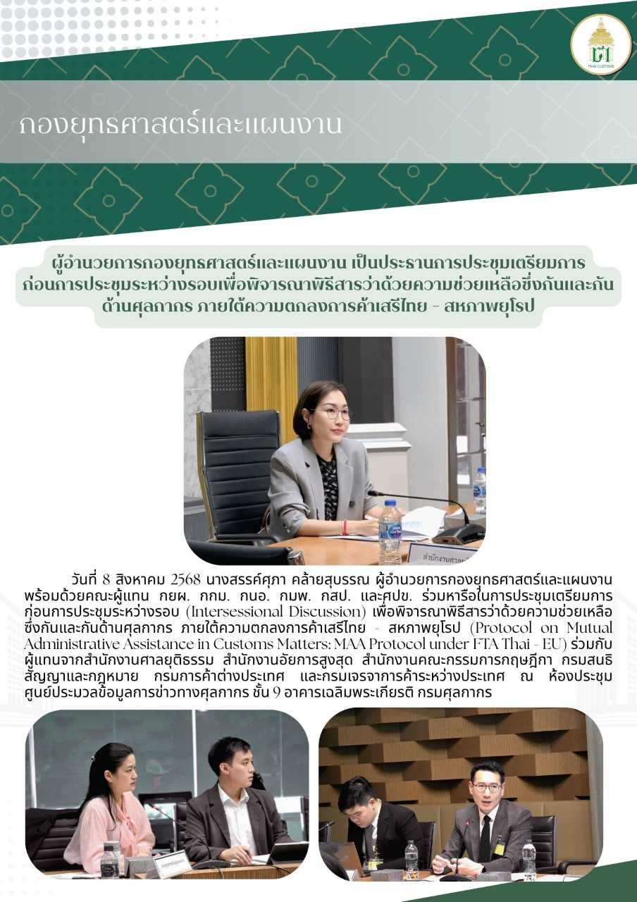 นางสรรค์ศุภา คล้ายสุบรรณ ผู้อำนวยการกองยุทธศาสตร์และแผนงาน พร้อมด้วยผู้แทน รวมทั้งหน่วยงานภายนอกที่เกี่ยวข้อง เข้าร่วมการประชุมเจรจาพิธีสารว่าด้วยความช่วยเหลือซึ่งกันและกันด้านศุลกากร