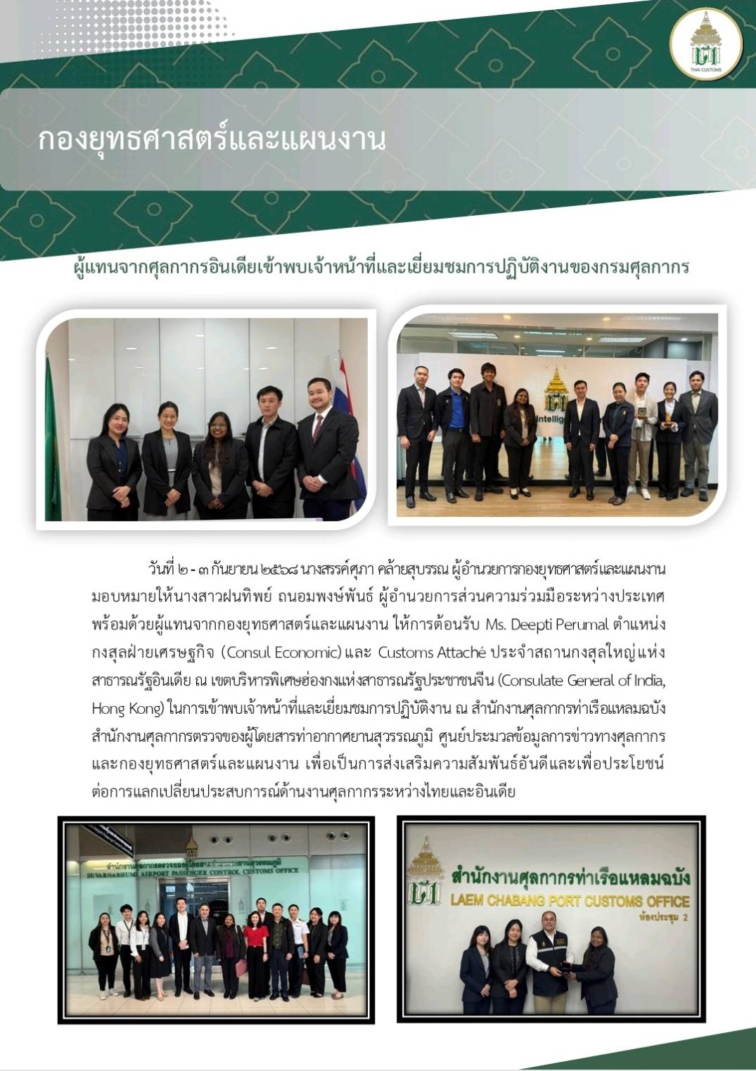 ผู้แทนจากศุลกากรอินเดียเข้าพบเจ้าหน้าที่และเยี่ยมชมการปฏิบัติงานของกรมศุลกากร